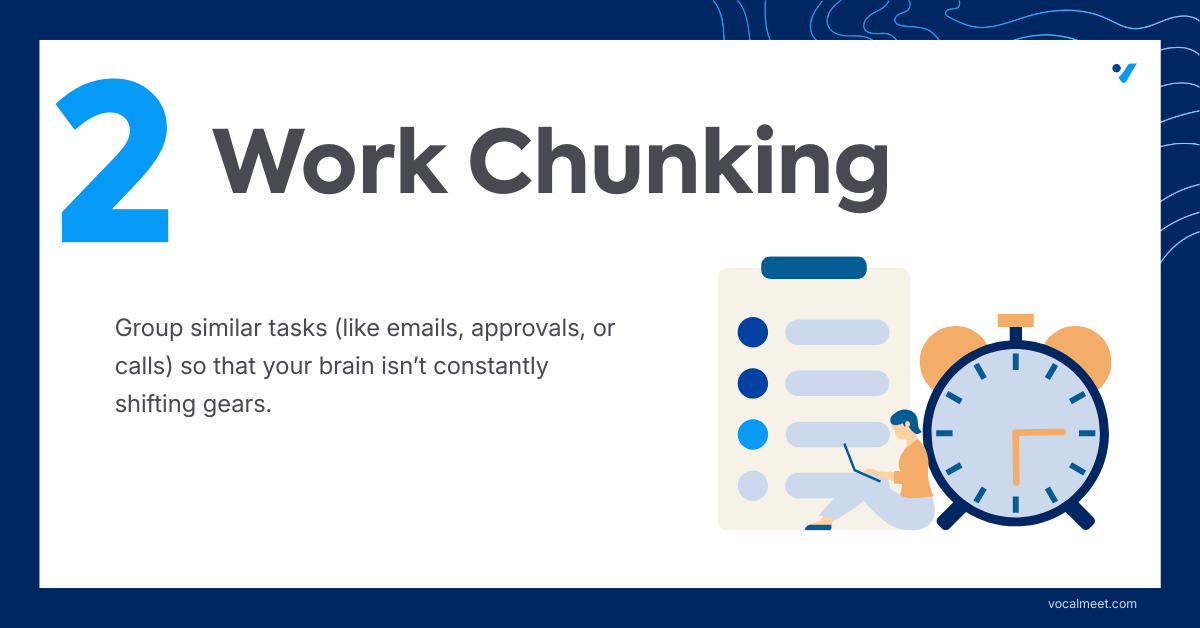 To boost efficiency and keep your team productive, here are five ways to implement time chunking into your daily operations: